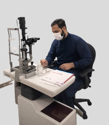 The initial visit includes a detailed socket evaluation, eyelid assessment, medical history review, and discussion of treatment options.